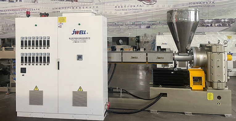 整套设备由加料系统、滴头筛分装置、挤出机、换网器、模具、校准器、真空冷却系统、冲孔检测装置、牵引装置、收卷机等主要部件组成。整套设备由PLC控制,伺服电机驱动,控制更加精确,确保了整条生产线的自动化生产。