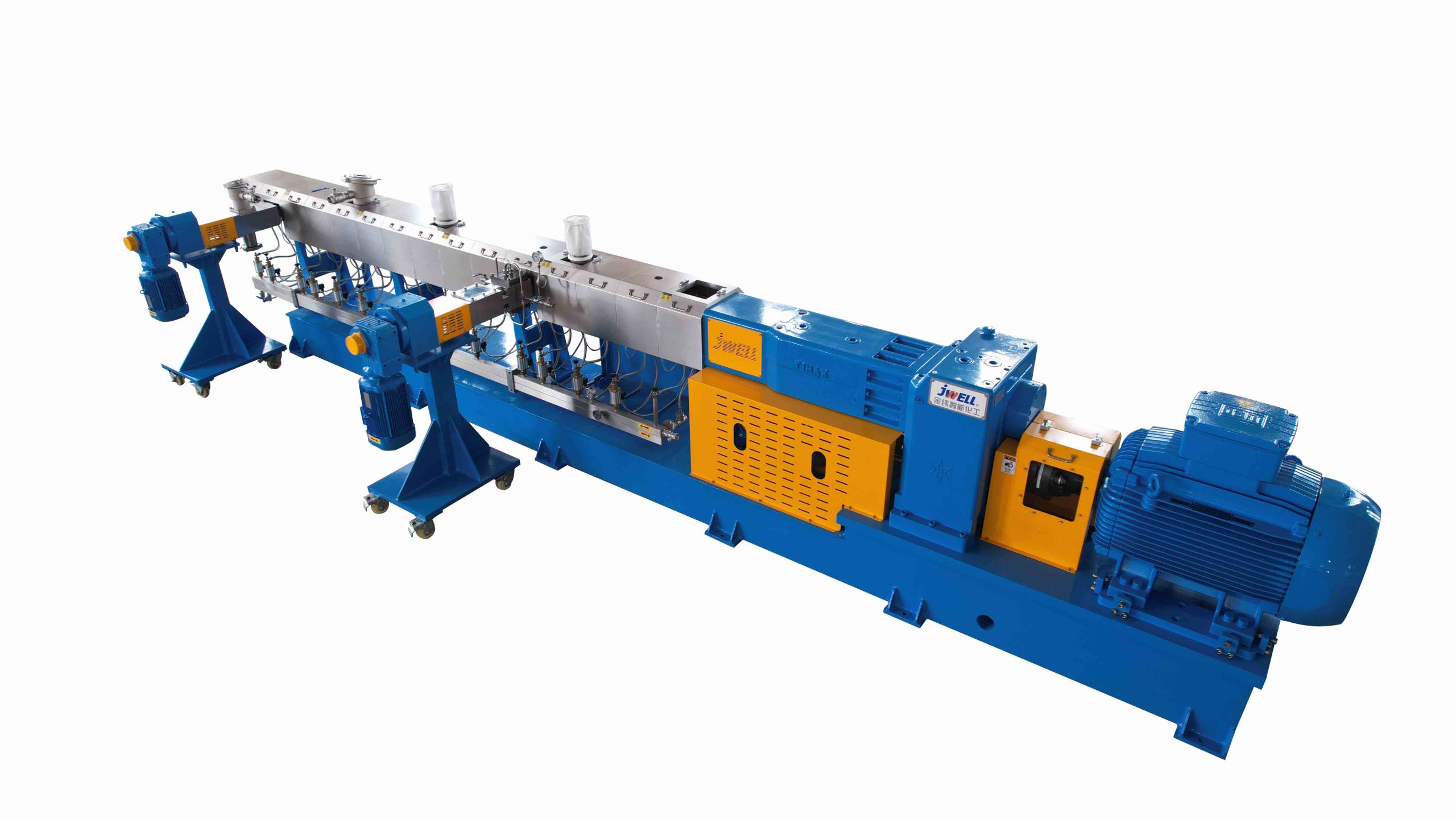 CJWV series twin screw extruder mainly focuses on high filler masterbatches, reaction extrusion and fluffy material system for low SEI application.